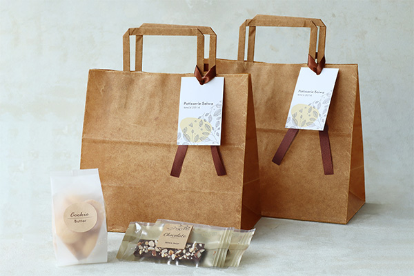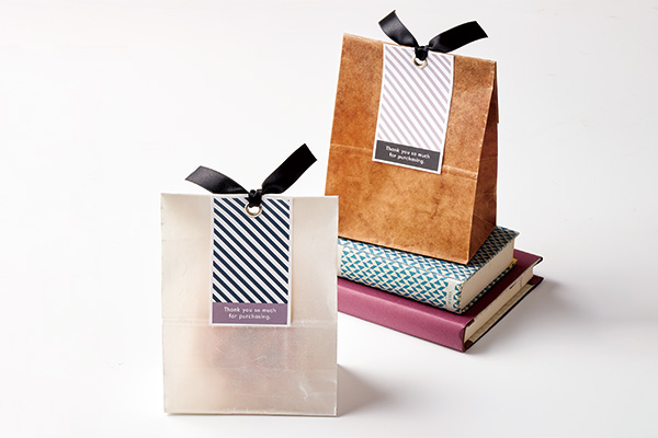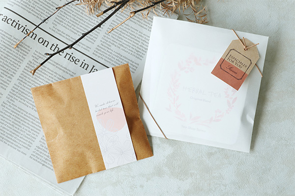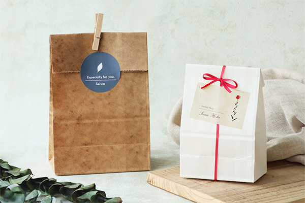 ロウ引き加工したおしゃれな角底袋は、個包装のお菓子やハーブティーなどを入れてお使いいただけます。
