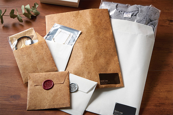ロウ引き加工した封筒は、シワをつけることでアンティークな風合いが生まれるおしゃれなパッケージです。ヒモやシールでアレンジできます。