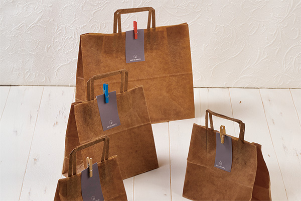 ロウ引き加工を施している角底袋で。ハトメを使用してワンランク上のアレンジにしてはいかがでしょうか。